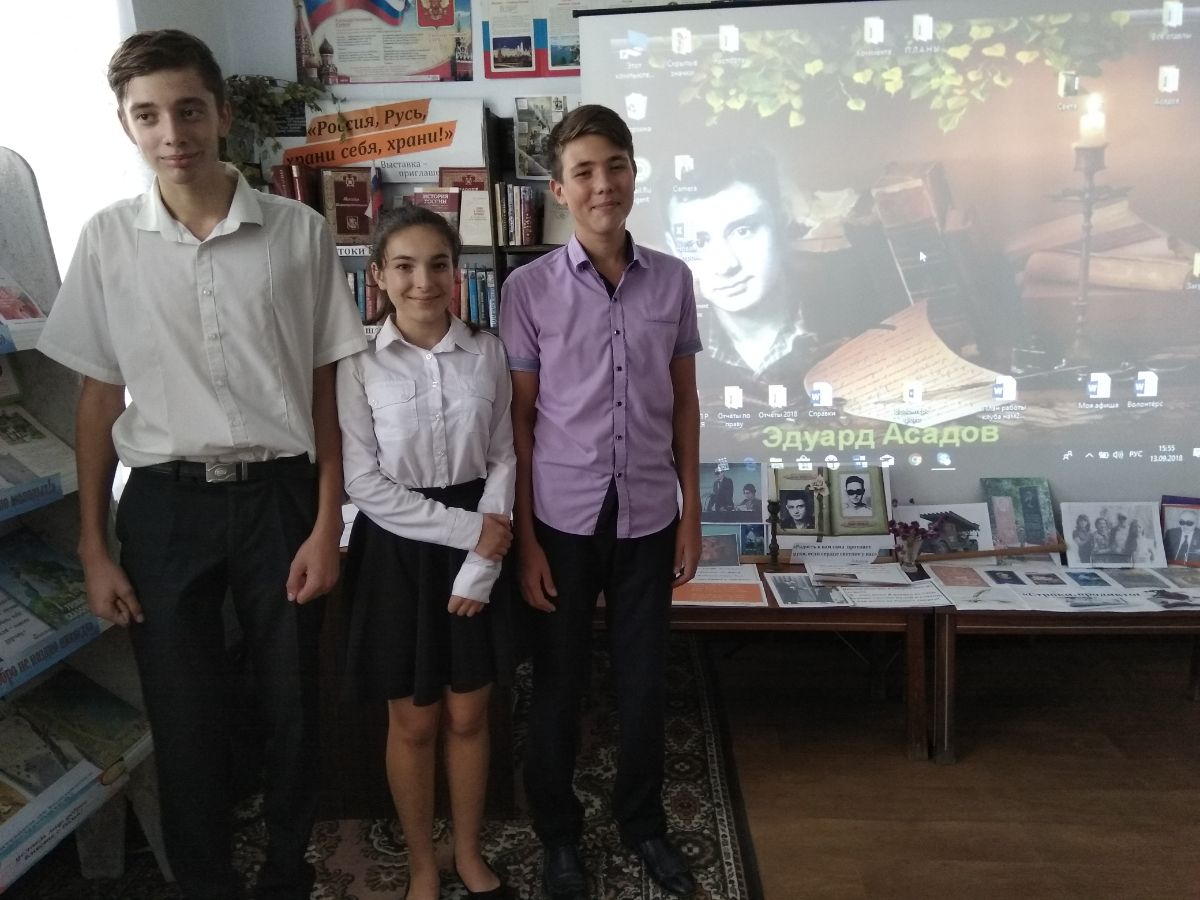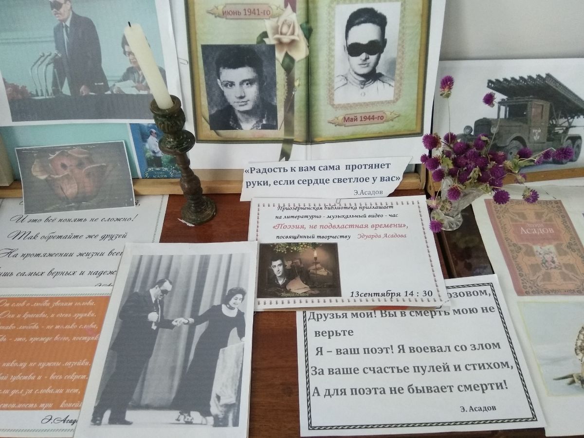 13 сентября в Приозёрненской библиотеке для 9-11 классов прошёл литературный вечер «Поэзия, неподвластная времени», посвящённый творчеству Эдуарда Асадова.