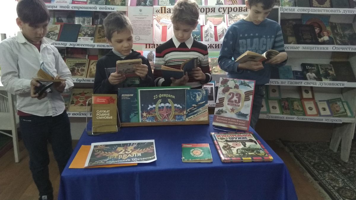 23 февраля 2020 Беседа "Наша армия крепка!" В заключении мероприятия раздала школьникам кижные закладки с перечнем книг военной тематики.