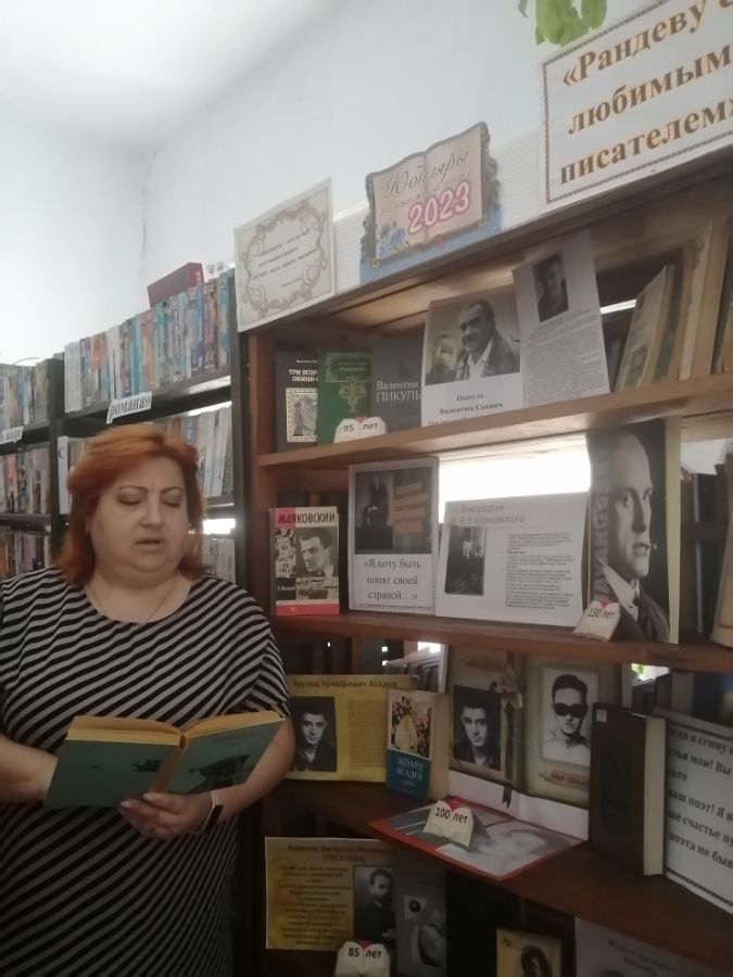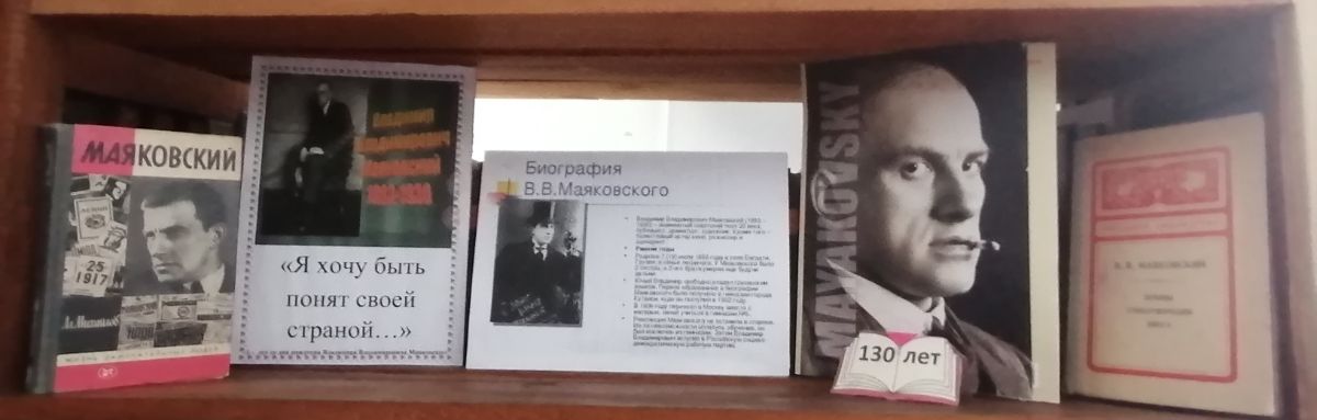 19 июля в Приозерновской б/ф № 30 к 130 - летию В. В. Маяковского провели вечер поэзии «Слушайте, товарищи потомки». В ходе мероприятия библиотекарь рассказала участникам о жизни и творчестве поэта, о многогранности таланта: Маяковский был художником, режиссером, актером, о необычном стиле написания произведений, рассказала об особенностях чтения стихотворений поэта. Присутствующие читали стихотворения Владимира Маяковского. К мероприятию была оформлена книжная выставка «Я хочу быть понят своей страной…», на которой были представлены книги и статьи по жизни и творчеству Владимира Маяковского.