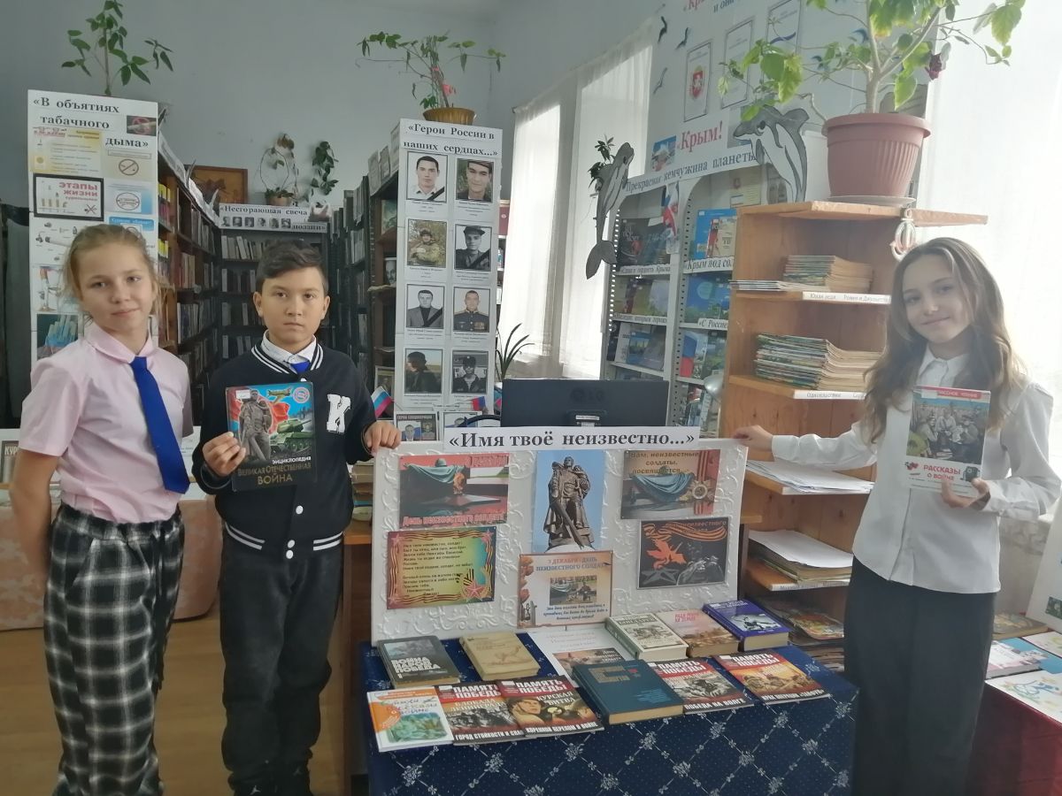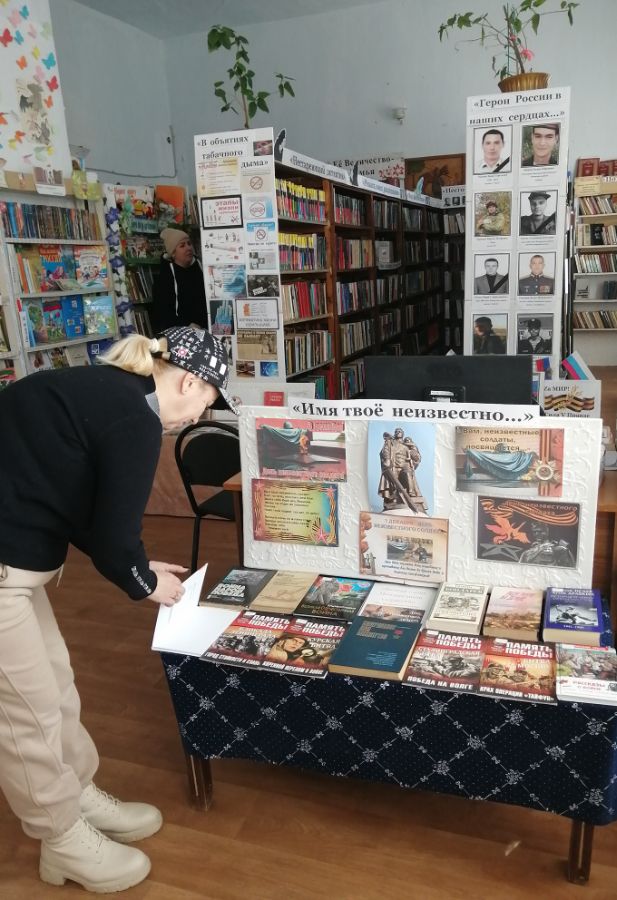 3 декабря в Приозерновской б/ф № 30 представили выставку– реквием «Имя твое неизвестно…», посвященную Дню неизвестного солдата. На выставке читателям представлены материалы, освещающие события Великой Отечественной войны: стихи, повести, рассказы о героизме и мужестве советских воинов, проявленных в жестоких схватках с врагом в период с 1941 по 1945гг. В рамках обзора пользователи библиотеки познакомились с историей празднования Дня Неизвестного Солдата в России, воинской доблестью и подвигами солдат, отдавших свою жизнь за родную страну в годы Великой Отечественной войны, чьи имена остались неизвестными.