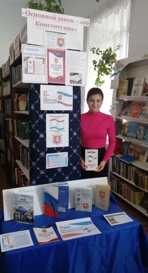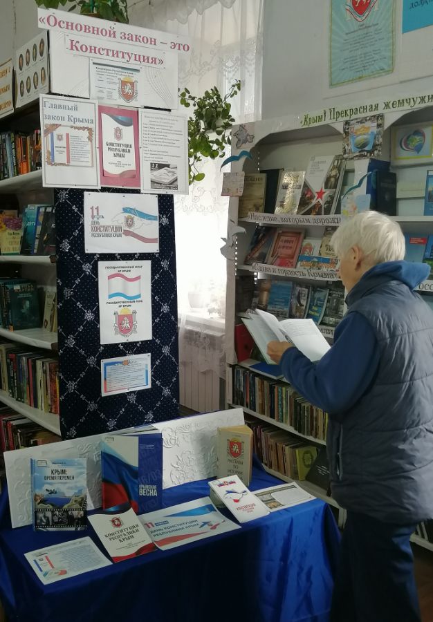 11 апреля в Приозерненской б/ф № 30 провели выставку – обсуждение «Основной закон – это Конституция», посвященную Дню Конституции Республики Крым.