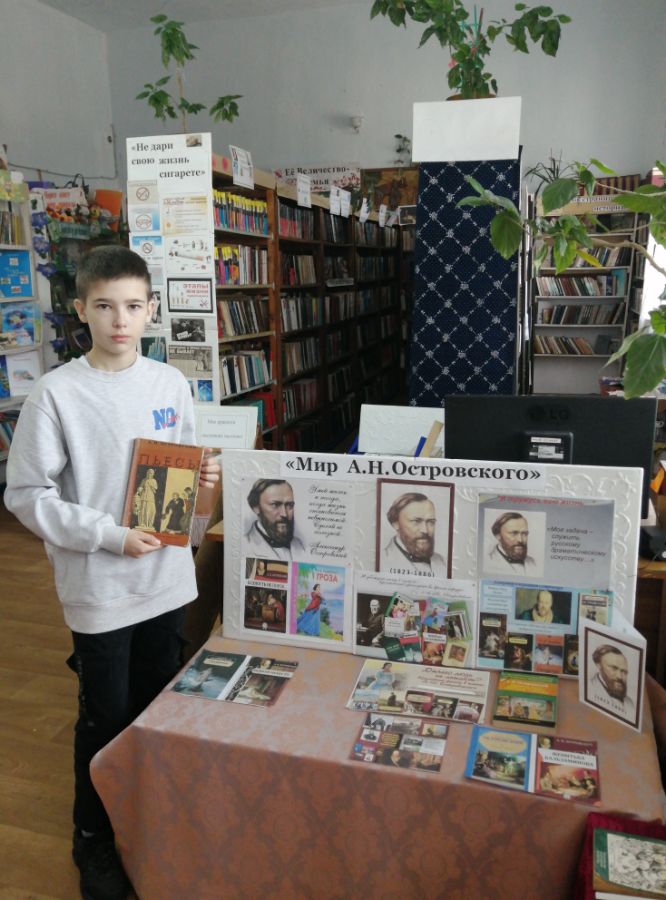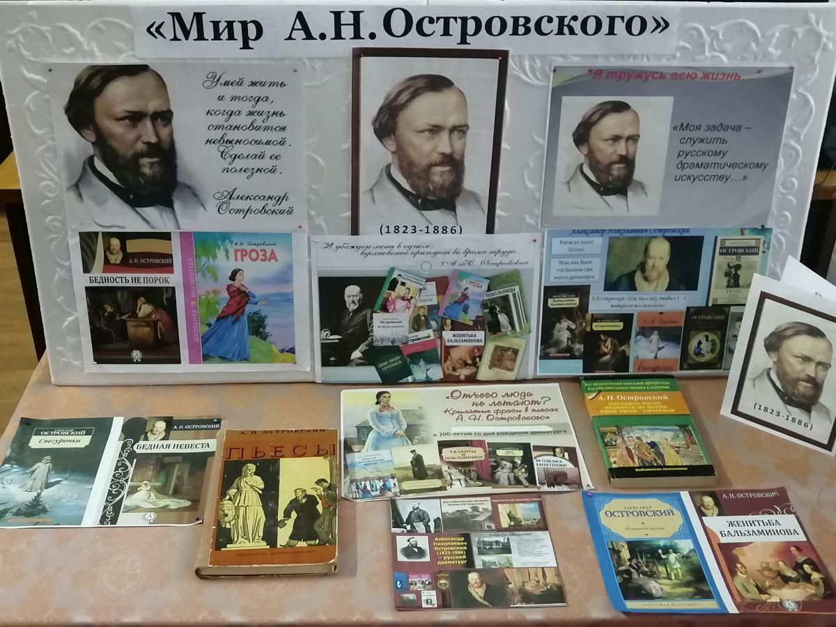 11 апреля в Приозерненской б/ф № 30 прошла выставка – посвящение «Мир А.Н. Островского», приуроченная ко дню рождения великого русского драматурга Александра Николаевича Островского.