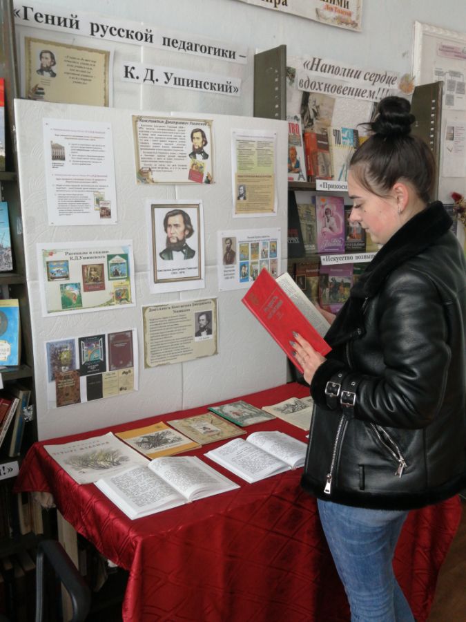2 марта в Приозерненской б/ф № 30 провели выставку – знакомство «Гений русской педагогики – К. Д. Ушинский», посвященную 200 - летию со дня рождения Константина Дмитриевича Ушинского – одного из основателей российской педагогики.