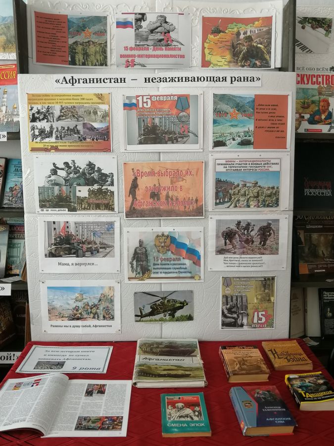 15 февраля в Приозерненской б/ф № 30 представили тематическую выставку “Афганистан – незаживающая рана»,посвященную Дню вывода войск из Афганистана.
